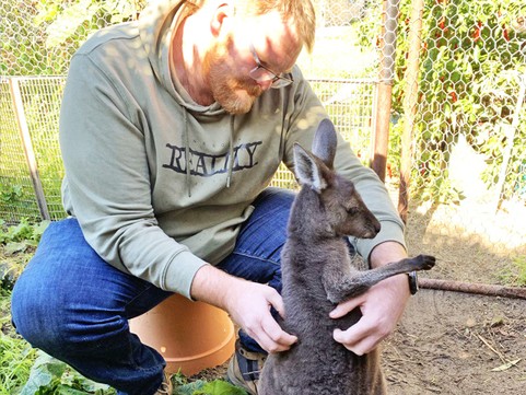 Daniel has always had a natural gift for nurturing and loving every orphan that’s come into our care. Over the years, he’s helped raise many joeys and still enjoys staying involved with our little mob—especially feeding time and bonding with the new arrivals as they grow, heal, and prepare for life back in the wild.